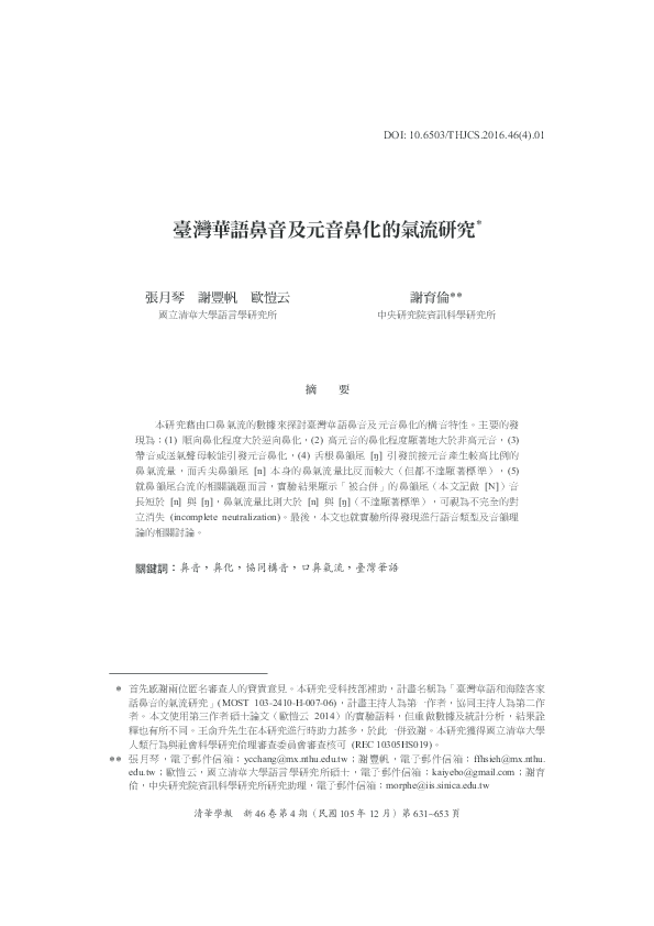 Pdf 臺灣華語鼻音及元音鼻化的氣流研究 An Aerodynamic Study Of The Nasals And Nasalization In Taiwanese Mandarin Feng Fan Hsieh And 歐云 Academia Edu